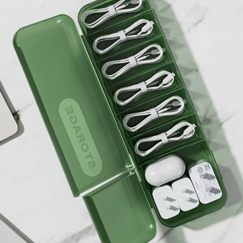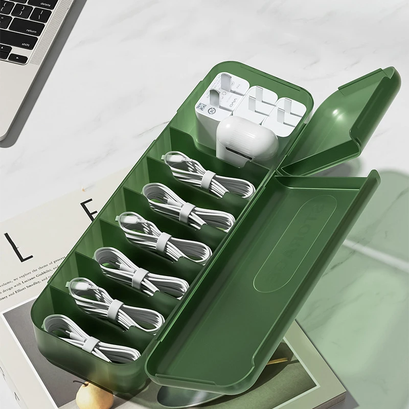 1. Clean storage: The data cable storage box can effectively organize and manage scattered data cables, make your desktop or drawer cleaner, and avoid confusion, loss or damage of data cables.